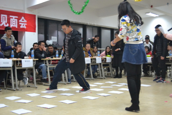 見面會(huì)加入娛樂游戲環(huán)節(jié)?!皳尩首印庇螒驎r(shí),新老成員一起隨著音樂繞著凳子行走,音樂停時(shí),沒有坐到凳子的同學(xué)被淘汰,每輪減少兩張凳子直到僅有兩人搶一張凳子;“踩氣球”時(shí)大家你追我趕,一陣啪啪聲后,剩下一個(gè)男同學(xué)和女同學(xué),男同學(xué)自己踩爆了氣球,贏得一片掌聲;“你來比劃我來猜”時(shí),有的隊(duì)伍配合默契,100秒內(nèi)猜出五六個(gè),而有的則一個(gè)也猜不出來;玩“一塊五”時(shí),女同學(xué)和男同學(xué)分別代表一塊錢和五角錢,主持人喊數(shù)字則大家抱在一起組成數(shù)字,不對(duì)的則淘汰;在“瓶子傳遞”過程中,音樂停止時(shí)瓶子在誰的手中就到教室中央進(jìn)行才藝表演,其中組織部16級(jí)部長孫正偉給大家表演了妖嬈五連拍。