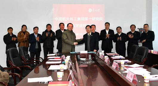 1月16日下午,我校與中國航天科工集團第十研究院戰(zhàn)略合作協(xié)議簽約儀式在機械工程學院會議室舉行。航天十院領導張兆勇、董群、李君山、鮑斌、張忠榮,校領導陳堅、王紅蕾、金道超,機械工程學院院長李少波、黨委書記安明剛出席儀式,航天十院及我校相關部門負責人,機械工程學院副院長楊勤、何鋒、黨委副書記代祥社參加儀式。