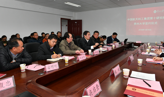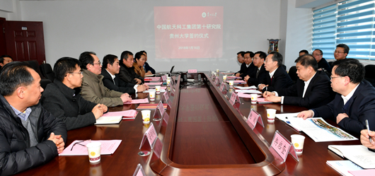 副校長金道超與航天十院副院長李君山簽訂了“中國航天科工集團第十研究院——貴州大學人才培養(yǎng)合作協(xié)議”。