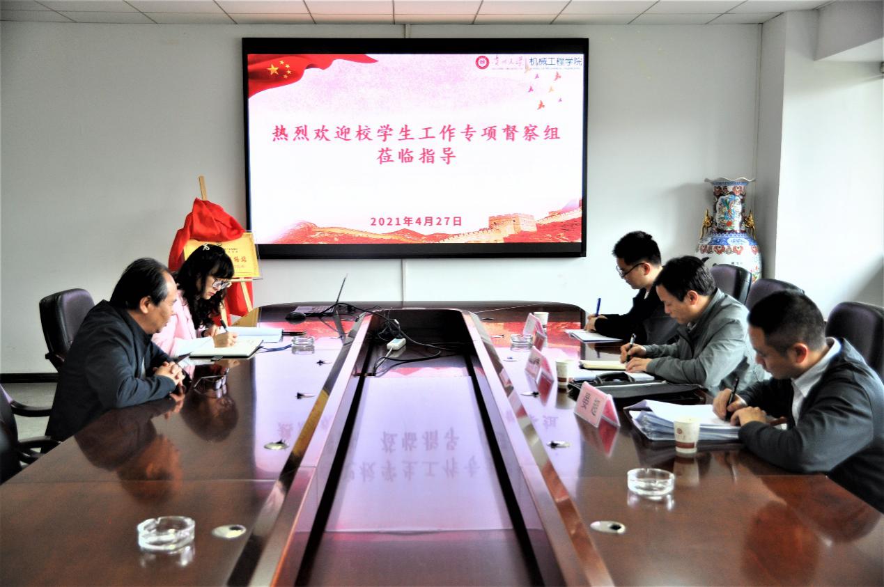機(jī)械工程網(wǎng)站訊(記者 李曉成|攝影 鄒醒佳)根據(jù)貴州大學(xué)《關(guān)于開(kāi)展學(xué)生工作專項(xiàng)督查的通知》要求,貴州大學(xué)督查組于2021年4月27日到機(jī)械工程學(xué)院開(kāi)展輔導(dǎo)員、班主任工作履職情況的專項(xiàng)督查。機(jī)械工程學(xué)院于中午1點(diǎn)在機(jī)械樓518舉行了在校學(xué)生工作專項(xiàng)督查工作座談會(huì),組長(zhǎng)由建筑與城市規(guī)劃學(xué)院黨委副書(shū)記趙家君擔(dān)任,成員是建筑與城市規(guī)劃學(xué)院學(xué)生科科長(zhǎng)晏超和校學(xué)生處老師李成龍,機(jī)械工程學(xué)院黨委書(shū)記安明剛、黨委副書(shū)記廖燁、學(xué)生科輔導(dǎo)員、各年級(jí)班主任出席會(huì)議。