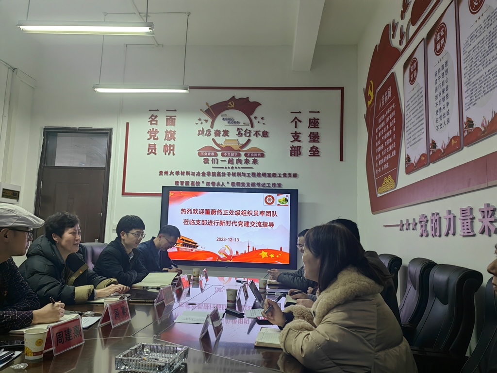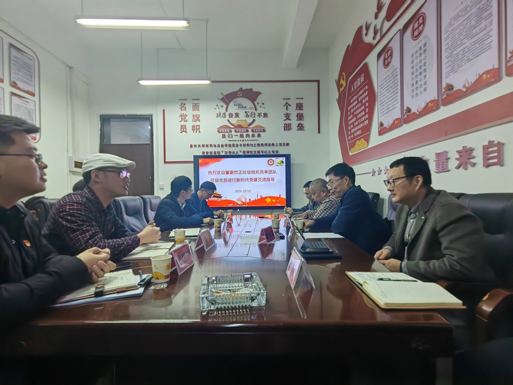 12月13日,貴州大學(xué)黨委正處級(jí)組織員董蔚然攜我支部支委成員與材料與冶金學(xué)院高分子材料與工程教研室教工黨支部開展黨建交流。材料與冶金學(xué)院黨委書記劉劍、正處級(jí)組織員熊玉竹以及高分子材料與工程教研室教工黨支部全體黨員參加活動(dòng)?;顒?dòng)由全國高?!半p帶頭人”教師黨支部書記工作室負(fù)責(zé)人、高分子材料與工程教研室教工黨支部書記謝海波主持。