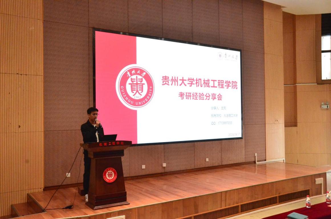 蘭天、陳凱文、李勇軍、周娟四位不同專業(yè)方向的學(xué)長(zhǎng)學(xué)姐依次上臺(tái),從考研技巧、時(shí)間安排、專業(yè)課技巧等方面分享了自己的經(jīng)驗(yàn),陶政宇從學(xué)校選擇、申請(qǐng)條件、前期準(zhǔn)備等方面分享他自己申請(qǐng)出國(guó)留學(xué)的經(jīng)驗(yàn)。分享結(jié)束后,五位學(xué)長(zhǎng)學(xué)姐在互動(dòng)環(huán)節(jié)為學(xué)弟學(xué)妹們答疑解惑。