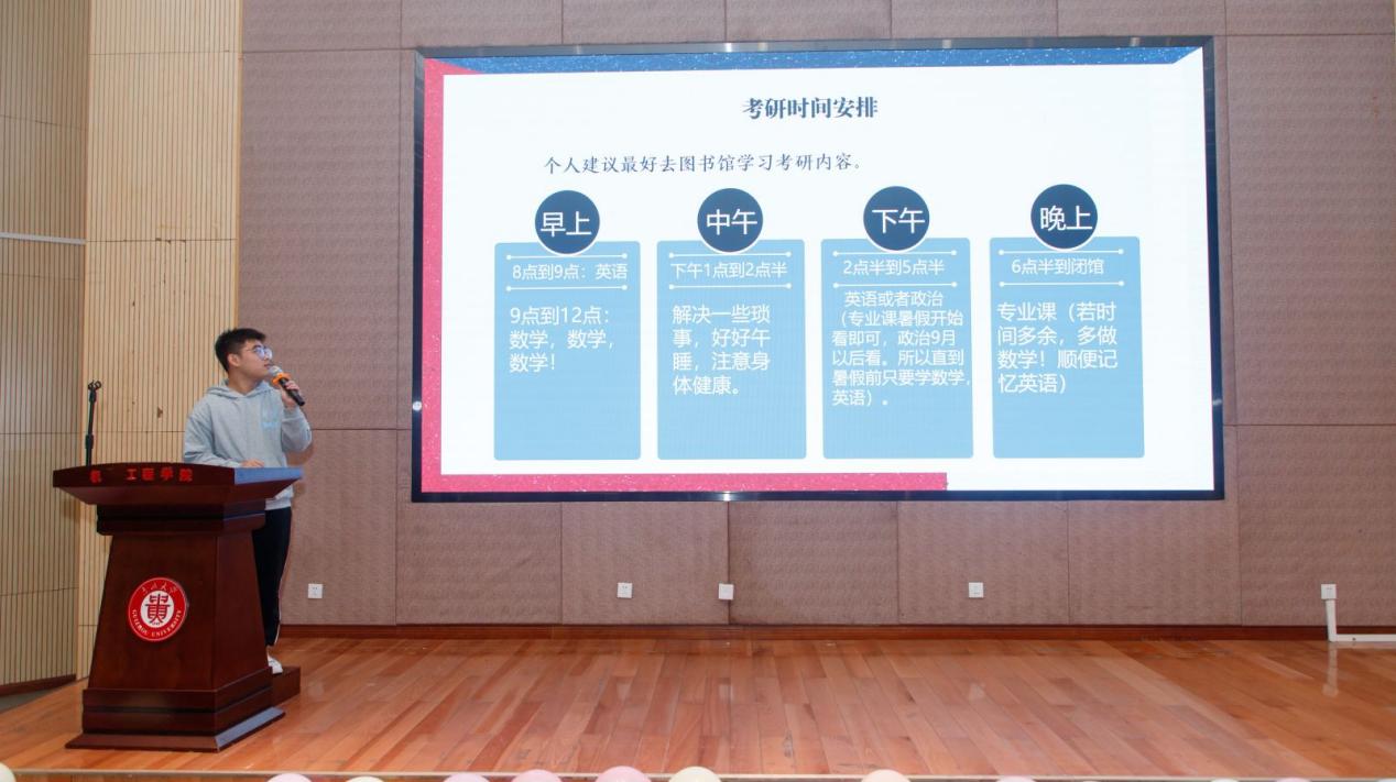 大會邀請材料成型及控制工程系保研學(xué)生王倩、考研學(xué)生韓池從選擇定位、計劃安排、學(xué)習(xí)方法等方面作升學(xué)經(jīng)驗分享,希望學(xué)弟學(xué)妹研途不迷茫,持之以恒做好備考準(zhǔn)備,全力以赴戰(zhàn)到考研最后一刻。