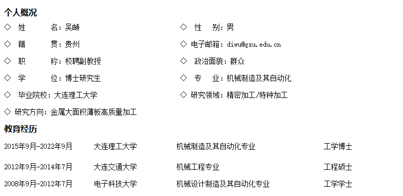 ◇ 2023年5月至今,貴州大學(xué),主持貴州大學(xué)引進人才科研項目“純銅平面超薄飛層化學(xué)機械研磨表面面形誤差控制原理研究”(責(zé)大人基合字(2022)55號),負責(zé)人:吳頔