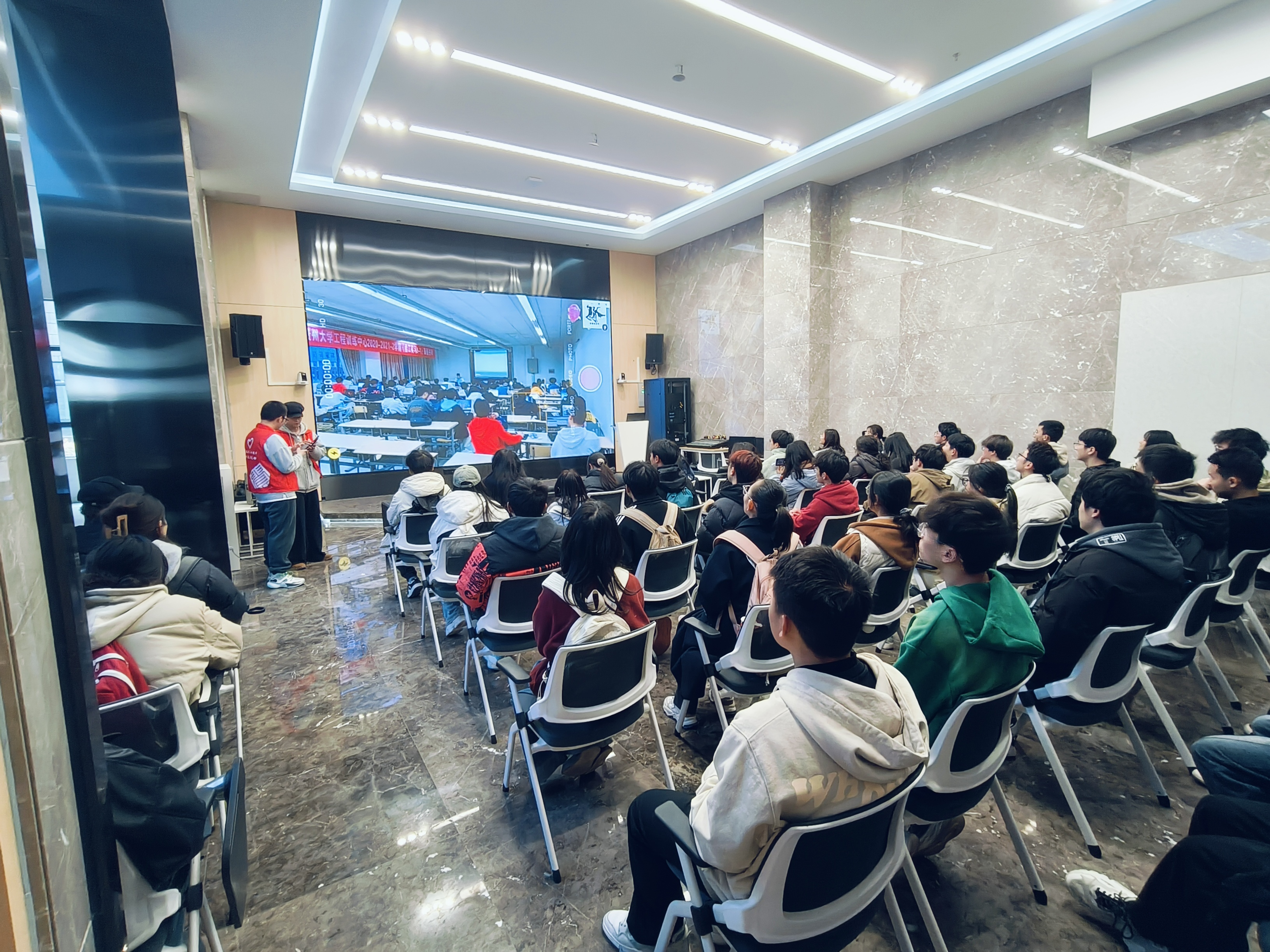 參觀結(jié)束后,同學們集中觀看了機械工程學院學生競賽紀錄片,并在現(xiàn)場親身體驗窄足機器人及無人機組裝。實踐操作,讓同學們不禁感嘆:緊握手中的不僅僅是遙控設(shè)備,更是自己科研創(chuàng)新的前進動力!