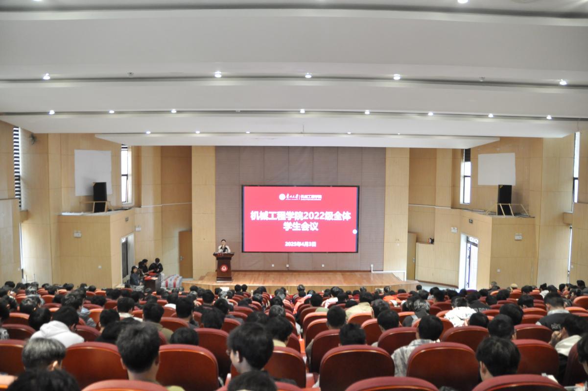 為幫助大三學(xué)生明確未來方向,合理規(guī)劃學(xué)業(yè)與職業(yè)發(fā)展,4月3日,機械工程學(xué)院在圓形報告廳召開了2022級本科生年級大會。此次大會聚焦考研動員、出國留學(xué)、入伍以及就業(yè)政策解讀,為同學(xué)們答疑解惑,指引前行方向。學(xué)院黨委書記趙津、正處級組織員董蔚然、副院長李家春、副院長唐正強出席,外國語學(xué)院樊章俊老師、學(xué)院教務(wù)科陳馨老師以及2022級全體同學(xué)參加。