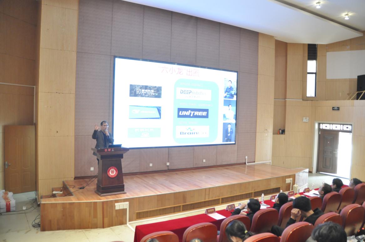 李家春以“杭州六小龍”火爆出圈的例子,一段機器人在復(fù)雜地形運動并做出高難度動作的視頻,引出機械專業(yè)在未來的發(fā)展前景,隨后以學(xué)院近兩年考研數(shù)據(jù)的對比,向同學(xué)們強調(diào)選修博學(xué)數(shù)學(xué)、英語的重要性,鼓勵動員同學(xué)積極備考升學(xué),選修學(xué)校組織開展的博學(xué)英語、數(shù)學(xué)課。