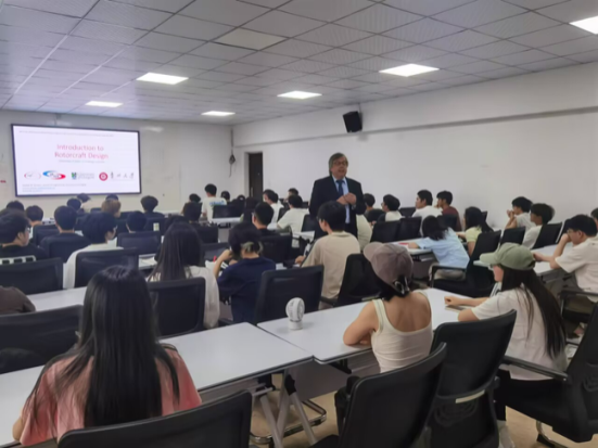 6月30日上午,學院教師代表與Barakos教授就相關(guān)學術(shù)領(lǐng)域進行了深入交流與探討。下午,Barakos教授為學院本科生做《旋翼飛行器介紹》講座。