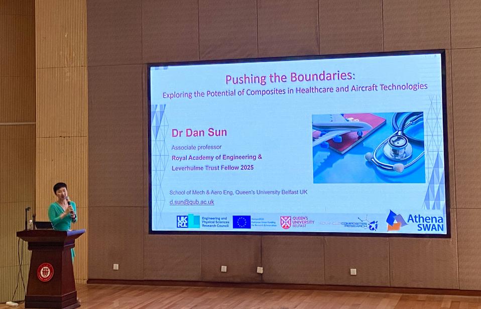 孫丹副教授聚焦先進(jìn)復(fù)合材料的前沿應(yīng)用。在醫(yī)療方面,她開發(fā)的智能復(fù)合植入材料不僅能替代受損骨骼,更能實現(xiàn)精準(zhǔn)藥物釋放和可控殺菌,為復(fù)雜骨病治療提供全新解決方案;在航空領(lǐng)域,其團(tuán)隊針對新一代可回收飛機材料,創(chuàng)新性地優(yōu)化了加工工藝,顯著提升制造效率與環(huán)保性能。兩項研究均體現(xiàn)了復(fù)合材料技術(shù)對產(chǎn)業(yè)升級和人類健康的積極推動作用。